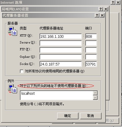 超級(jí)嗅探狗默認(rèn)打開的地址是localhost:9090,如果瀏覽器的配置是代理服務(wù)器模式,那么要把localhost加到“對(duì)以下列開頭的地址不使用代理服務(wù)器”里面去(如下圖所示)。否則就會(huì)去連接代理服務(wù)器的localhost,從而導(dǎo)致連接不上。