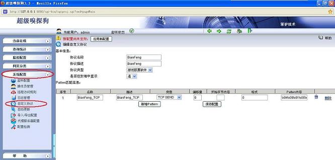 (1) 在“系統(tǒng)配置->自定義協(xié)議”中點擊“ 新增自定義協(xié)議”增加一個自定義協(xié)議,命名為BianFeng,協(xié)議類型選擇“游戲股票軟件”,如下圖所示: