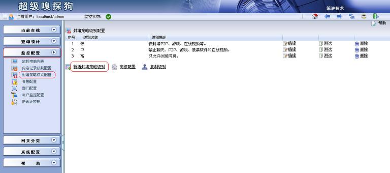 進(jìn)入監(jiān)控配置 -> 封堵策略級(jí)別配置 -> 新增封堵策略級(jí)別,創(chuàng)建一個(gè)新的封堵策略。4.配置封堵策略