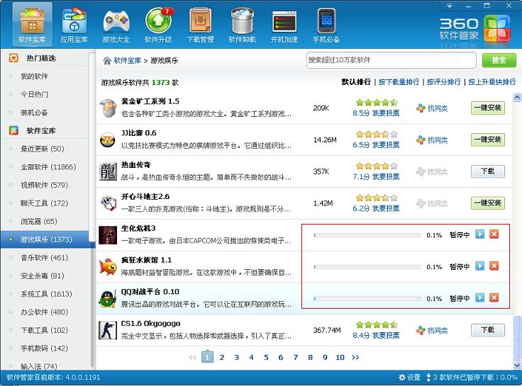 4. 這時(shí),該電腦使用360軟件管家下載安裝軟件就會被自動禁止(軟件下載被自動暫停)。