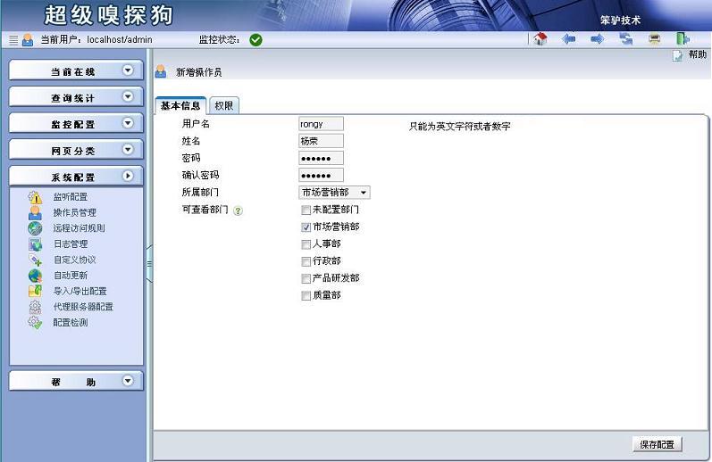 在這種情況下,可以給每個(gè)部門單獨(dú)設(shè)置一個(gè)操作員,這個(gè)操作員只能看到本部門的電腦的上網(wǎng)記錄、報(bào)表,也能給本部門的員工設(shè)置上網(wǎng)策略。