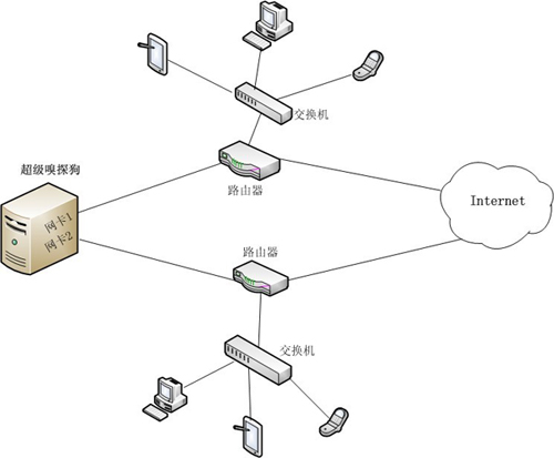 以同時監(jiān)控兩個局域網(wǎng)為例,如下圖: