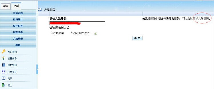1)選擇“通過(guò)郵件激活”,輸入激活碼后點(diǎn)擊“確認(rèn)”按鈕。