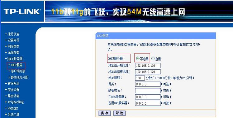 因為有線路由器已經(jīng)有了DHCP服務(wù),所以需要把無線路由器的DHCP服務(wù)關(guān)閉掉。