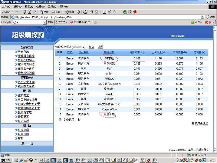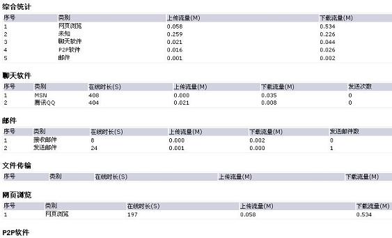 詳盡的協(xié)議統(tǒng)計報表,可以對各類局域網(wǎng)中使用過的P2P軟件、流媒體軟件、其他各類協(xié)議一目了然。