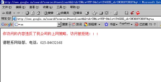 訪問被封堵網(wǎng)站時的提示: