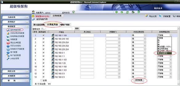 2. 在“監(jiān)控配置--> 監(jiān)控電腦列表--> 計算機列表”中應用封堵規(guī)則,如下圖所示: