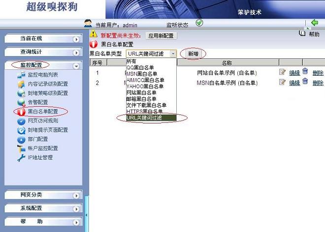 下面本文將介紹怎樣通過超級嗅探狗網絡監(jiān)控軟件來禁止好友買賣、游戲基地、搶車位。 1.在“監(jiān)控配置-- > 黑白名單配置配置”新增一個URL關鍵詞過濾,勾選上“啟用URL關鍵詞過濾”,如圖所示: [ALIGN-CENTER]