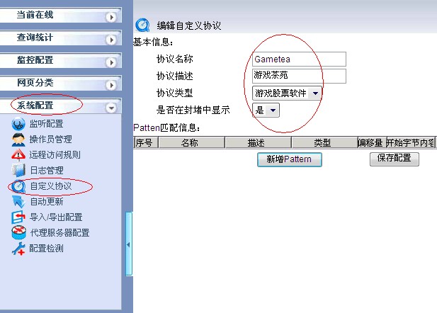 1.2 點(diǎn)擊“新增Pattern”,填寫Patten匹配信息后點(diǎn)擊“保存配置”,如下圖所示: