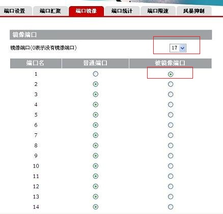 本例中,端口1設(shè)置為“被鏡像端口”接路由器,端口17設(shè)置為“鏡像端口”接WFilter監(jiān)控主機。即可實現(xiàn)監(jiān)控。