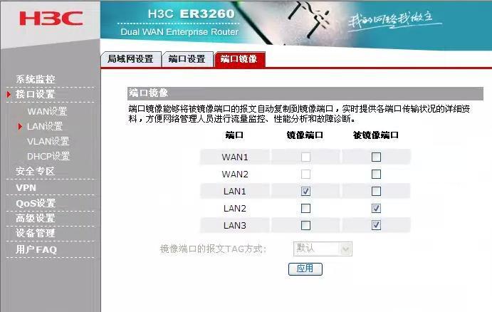 在本例中,直接利用H3C ER3260的端口鏡像功能配置端口鏡像即可,H3C ER3260端口鏡像的配置如下圖: