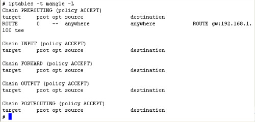 要使"--tee"選項(xiàng)能夠生效,必須啟用"ipt_ROUTE"模塊,該模塊默認(rèn)是不啟用的。
