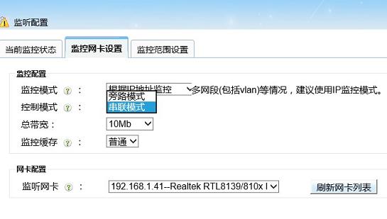 在WFilter里選擇串聯(lián)模式,監(jiān)聽(tīng)內(nèi)網(wǎng)網(wǎng)卡,保存并應(yīng)用新配置后即可實(shí)現(xiàn)監(jiān)控。